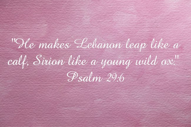 Psalm 296 KJ21 He maketh them also to skip like a calf Lebanon and Sirion like a young unicorn. Psalm 296 English Standard Version 6 He makes Lebanon to skip like a calf and Sirion like a young wild ox. God makes Mount Lebanon skip like a calf and Mount Hermon jump like a wild ox.