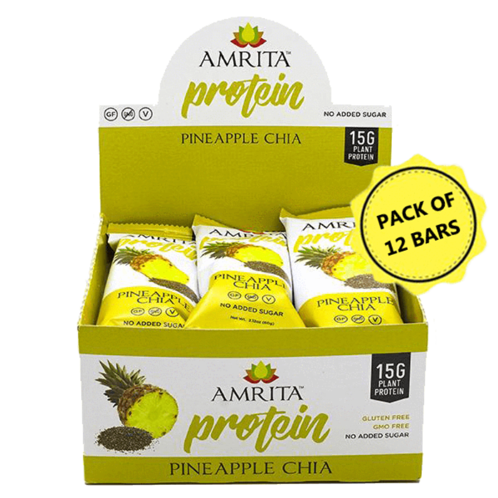Amrita Foods Pineapple Chia High Protein Bar Pack Of 12 Bars 15g Of Protein High Fiber Vegan Keto Friendly Gluten Free Non Gmo Dedicated Top 8 Allergen Manufacturer Walmart Com